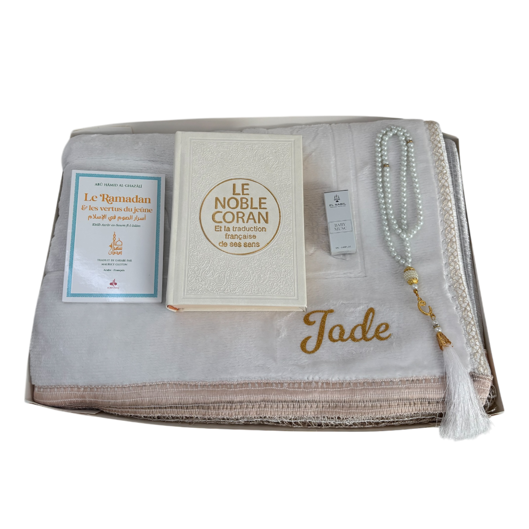 • Un tapis de prière personnalisé avec une broderie raffinée.