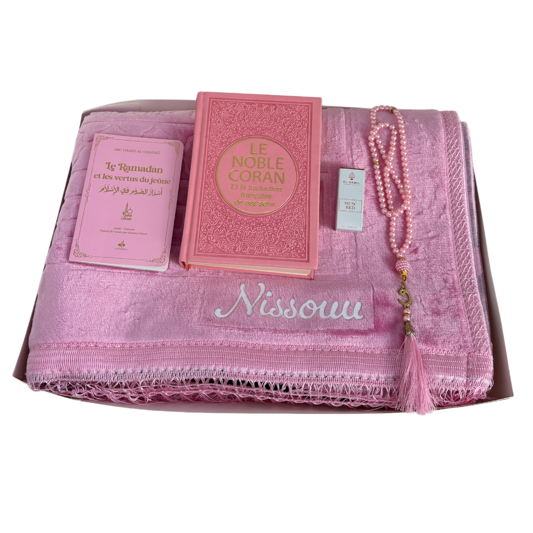 Ce coffret spécial Ramadan est une belle idée de cadeau pour célébrer ce mois sacré. Il est disponible en trois coloris élégants : noir, rose et blanc. Chaque coffret contient des éléments soigneusement sélectionnés pour accompagner vos moments spirituels :